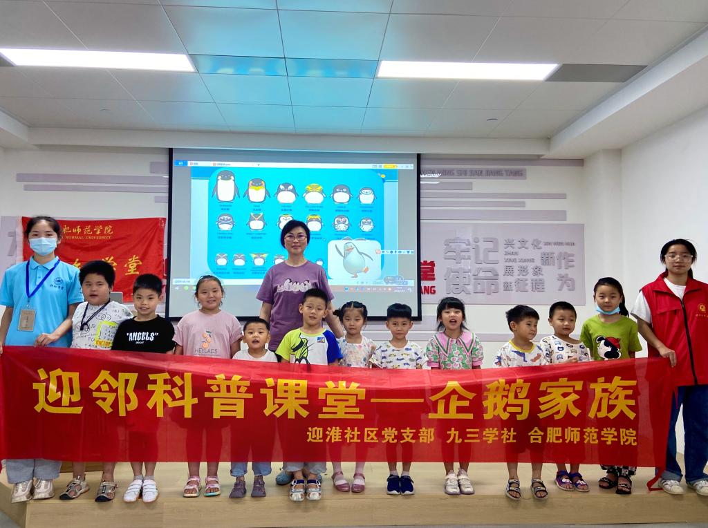 九三学社安徽省委员会在这个暑期走进社区、走进员工,深入开展百名专家乡村学堂讲科普主题实践活动,扎根推进双树双建,主讲人郭丽教授受邀为公司在义城街道迎淮社区的“行知学堂”开办了一场关于“企鹅家族”的科普讲座。参加本次活动的有“行知学堂”的“小先生”、小学员及家长、社区招募的对本次讲座感兴趣的社区居民子女及家长。