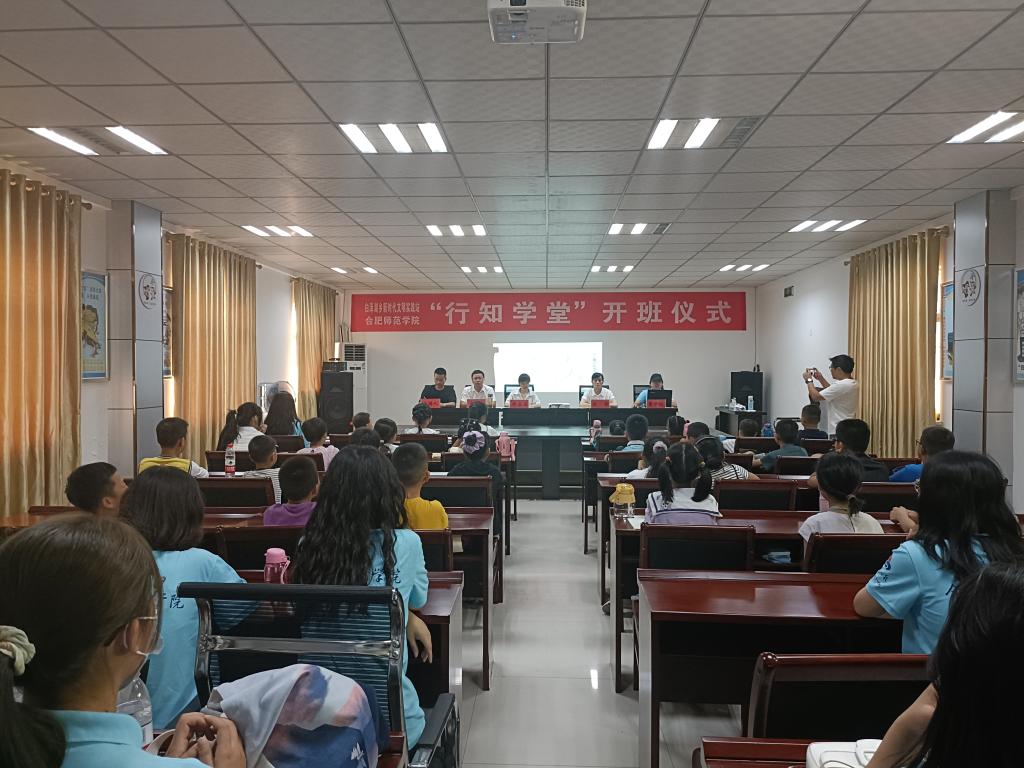 2022年7月11日,122cc太阳成集团稷下学宫行知学堂开班仪式于安徽省安庆市白泽湖乡顺利举行。出席此次开班仪式的有团宜秀区委副书记乔晶晶、白泽湖乡宣传委员、统战委员方芳、白泽湖乡人大副主席袁亮,主持人李伟,全体小先生以及39名小学员。