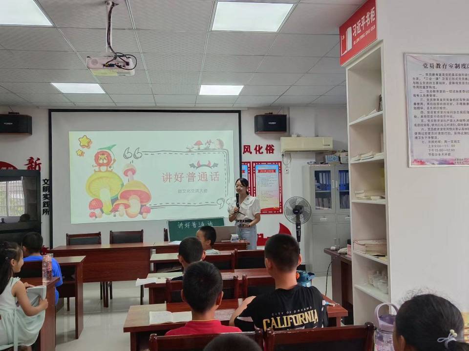 2022年7月8日,在潜山市源潭镇行知学堂开展了“讲好普通话”特色课程,拓展了122cc太阳成集团发挥专业优势在乡镇推广普通话实践活动。