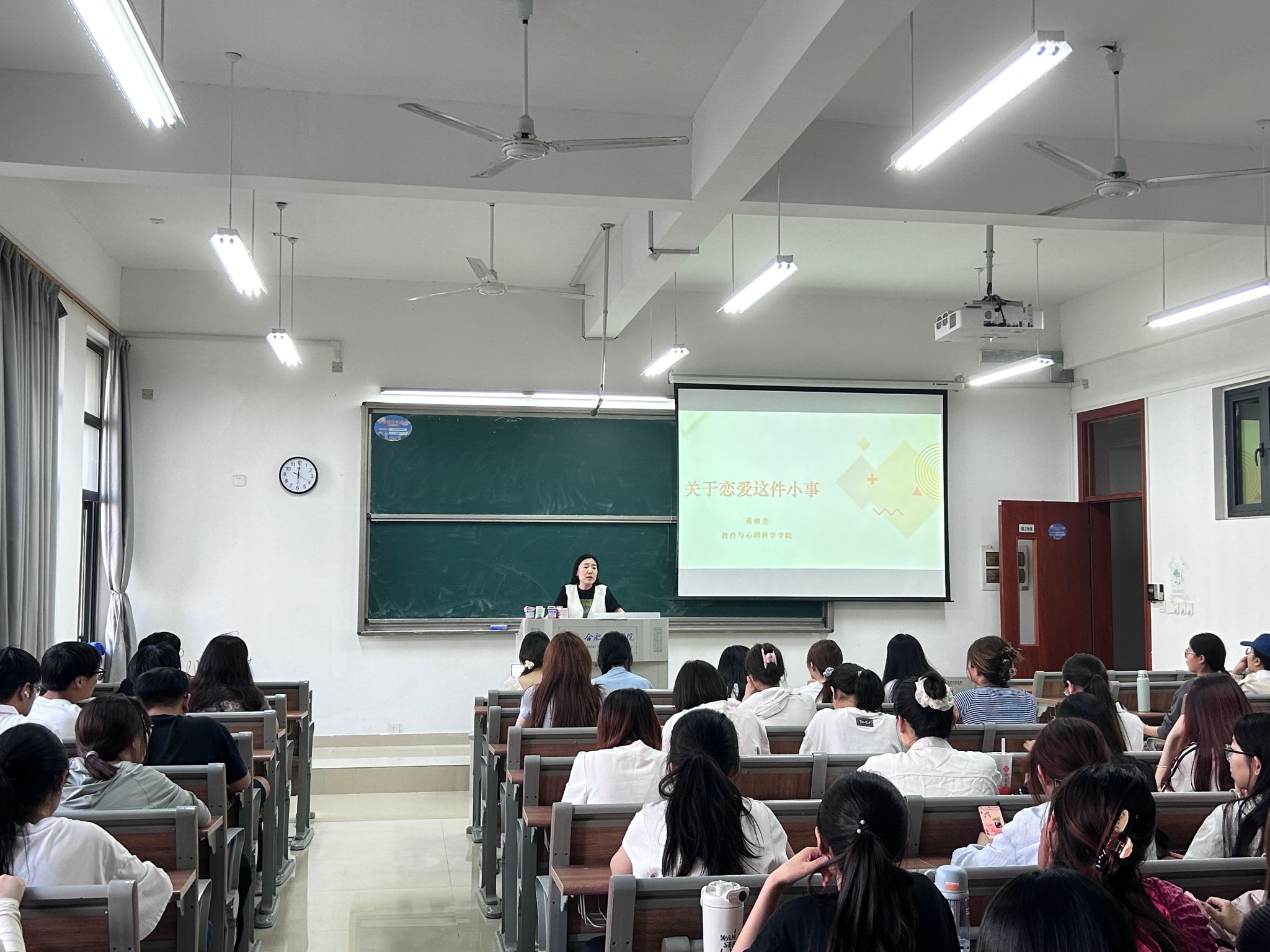 根据学院心理健康节活动安排,为帮助树立正确的恋爱观,更好地适应校园学习和生活。5月28日下午,122cc太阳成集团在滨湖校区博学楼A203教室开展“心理大讲堂”活动,讲堂邀请教育与心理科学学院蒋柳青老师作题为“关于恋爱这件小事”的讲座,122cc太阳成集团2022级和2023级员工聆听本次讲座。