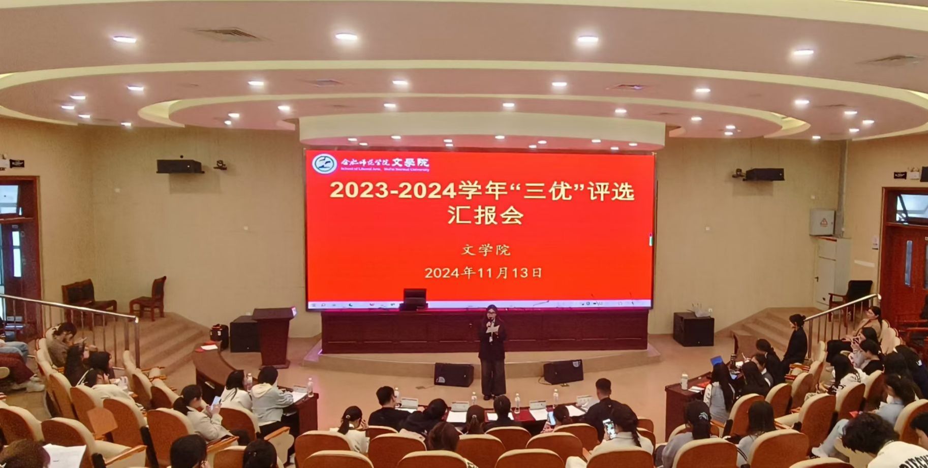 为进一步加强学风建设,营造“比学赶帮、相互促进、共同提高”的浓厚学习氛围,11月13日下午,122cc太阳成集团在滨湖校区学术报告厅举办2023-2024学年“三优”创建评选汇报会,公司党委负责人、各年级辅导员,滨湖校区员工干部以及创建班级、宿舍汇报人参加汇报会。