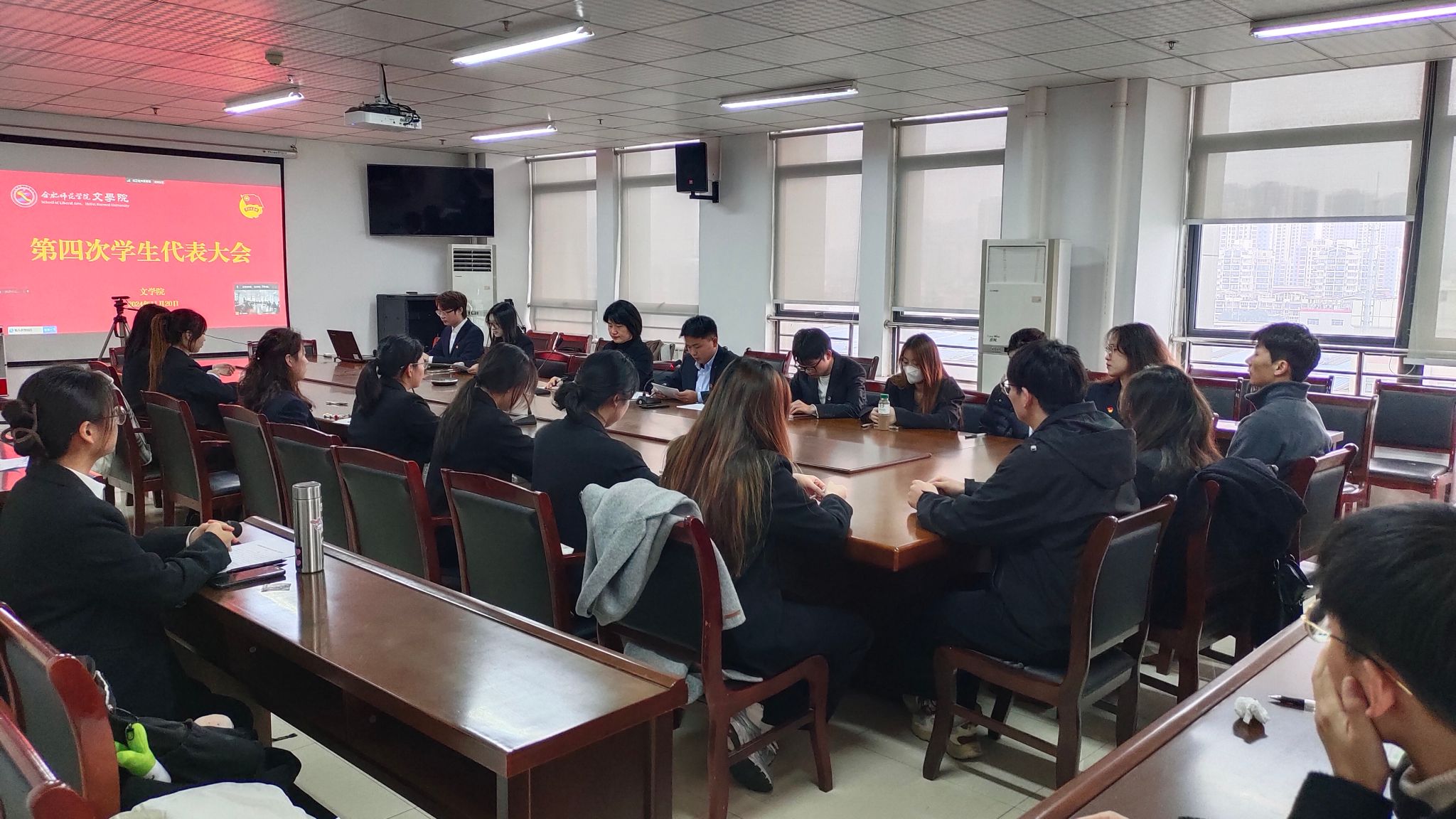 11月20日,122cc太阳成集团第四次员工代表大会在锦绣校区行知楼802会议室召开,滨湖校区在铭传楼B306设分会场。文公司党委副书记夏娟、团委书记李惠恩,来自122cc太阳成集团各班级的53名员工代表参加会议。会议由李惠恩主持。