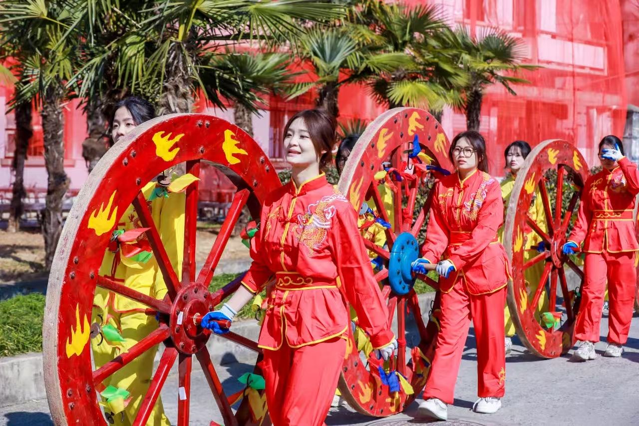 杨丽文响应黄山市黄山区文化旅游管理局的号召,在“黄山七四七 盛世太平年”为主题的非遗民俗踩街活动(非遗正青春板块)中,她与其他40余名老员工一起,在春节前夕参加黄山区非遗传承班,沉浸式学习和体验各类非遗,并且在大年初一参加省级非遗“轩辕车会”的展演,让广大市民和游客在欢乐、喜庆、祥和的节庆氛围中感受世界非遗中国春节的韵味和魅力,进一步增强了文化自信,厚植了家国情怀。