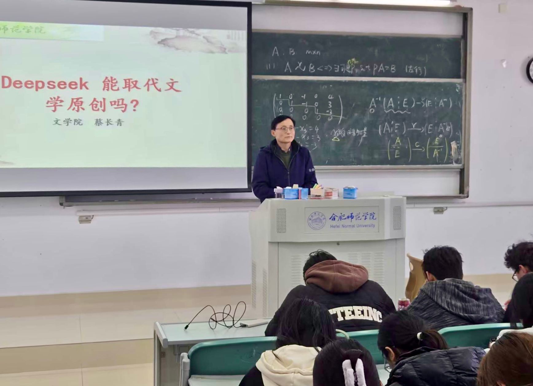 3月19日,122cc太阳成集团“行知讲堂”在滨湖校区开讲,中文系蔡长青老师在博学楼A203教室作题为《DeepSeek能取代文学原创吗?》主题讲座,带领汉语言文学专业员工一同领略原创文学与AI的跨界对话。