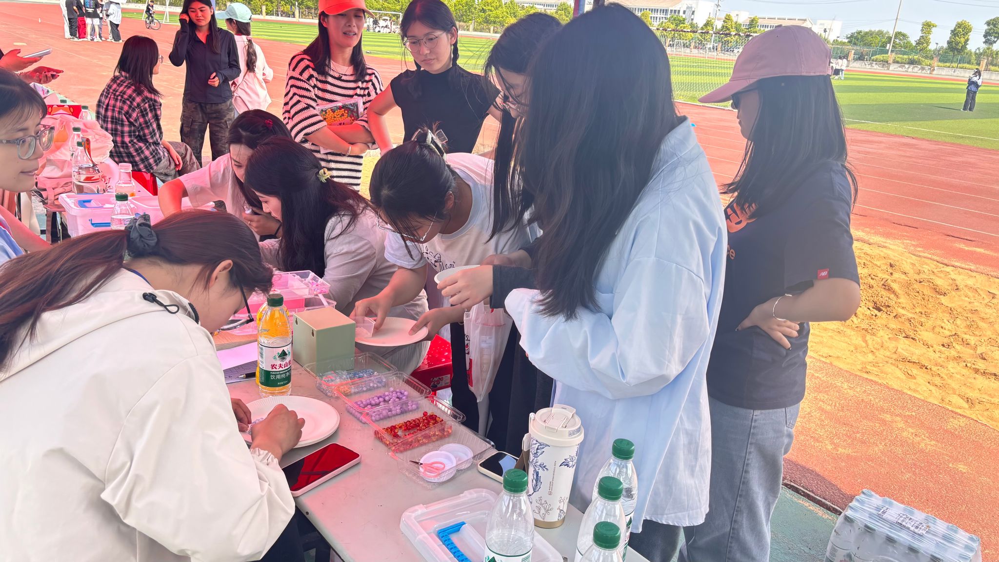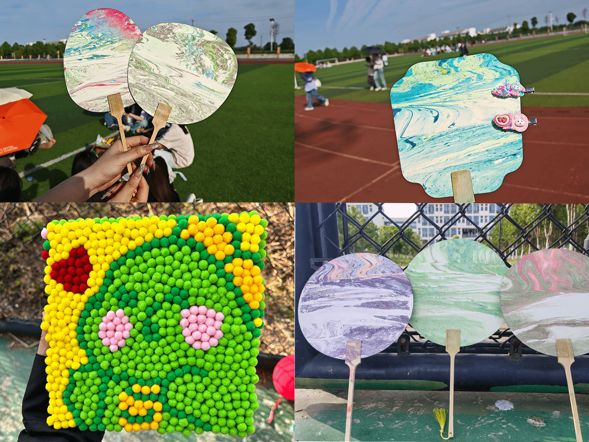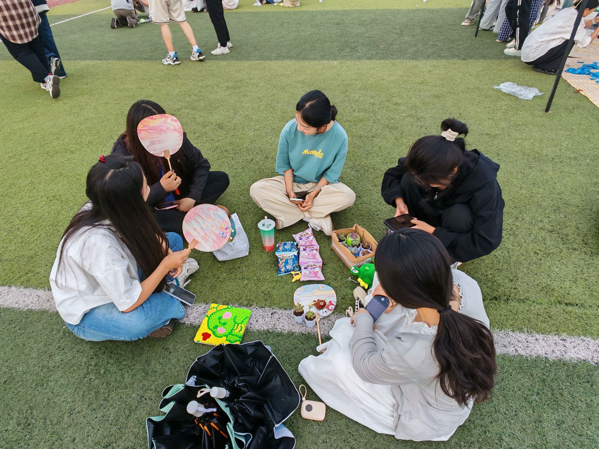 手工DIY活动区,非遗漆扇制作、国风手链、奶油胶发卡、毛球画diy等活动,共同为同学们提供了展现创意与传承文化的平台。非遗漆扇”的制作从空白到缤纷,每一步都充满惊喜,水中一转一漂,精美的图案便跃然纸上;奶油胶发卡diy制作环节,员工们神情专注,反复斟酌细节,沉浸式体验的创造乐趣;“毛球画DIY”活动打开员工们的想象力,缤纷、阳光、活力的“多巴胺”毛球让色彩灵感与独一无二的创意合二为一,开启了一段启迪美学的治愈之旅;“国风手链DIY”活动则聚焦新中式美学,晶莹剔透的珠子折射出五彩的光芒,员工们将各色的编织线左绕右转、挑线压线,让传统在指尖活起来,把春日玩“出圈”。文院学子在千年传统文化的体验中感受着生命的多彩与缤纷,体验着独属于他们的独家记忆。