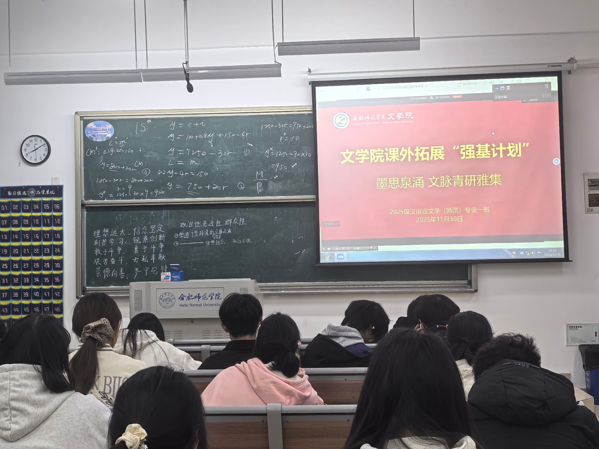 目前,“强基计划”已实现2025级汉语言文学(师范)专业员工全员覆盖,晚自习不再是单一的课业自习,而转变为目标驱动的素养拓展黄金时段。同学们不仅清晰了专业成长路径,更增强了集体凝聚力与专业认同感。人人有任务、周周有活动、项项有收获的良性循环正在形成。