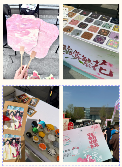 活动现场,公司学子精心筹备的原创文创、手工作品惊艳亮相春日市集,造型精巧、兼具文化元素的作品吸引了大批游客驻足参观、互动体验。学院网络与新媒体专业学子主动担当,发挥专业优势为现场人员提供全程专业摄影服务,用镜头捕捉花朝雅韵、定格活动中的精彩瞬间,为参与者留下了珍贵的影像记忆。在面塑、糖塑、水墨染扇等非遗手工体验环节,同学们满怀热忱、认真钻研,亲手操作、亲身感受,在指尖的灵动中体悟传统手工艺的匠心与温度,近距离领略非遗文化的独特魅力。