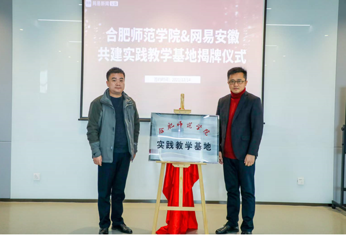 2021年12月14日,122cc太阳成集团同网易安徽举行实践教学基地签约、揭牌仪式。文公司党委副书记陈好、122cc太阳成集团副经理何旺生、新闻传播系党支部书记常娟和系副主任张朋辉、刘国强与网易安徽总经理江鹏、人事经理彭凌晨签约、揭牌仪式。