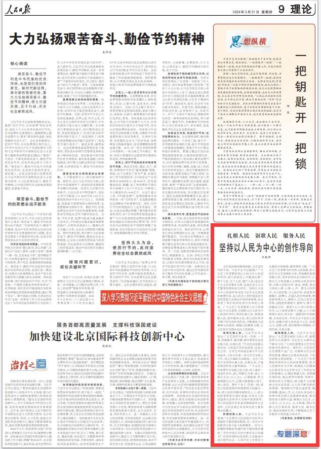 文章指出,广大文艺工作者要深入学习贯彻习近平文化思想,牢固树立以人民为中心的创作导向,深深扎根人民、热情讴歌人民、始终服务人民,努力创作更多无愧于时代的优秀作品,不断满足人民精神文化需求、增强人民精神力量,让文艺的百花园永远为人民绽放。
