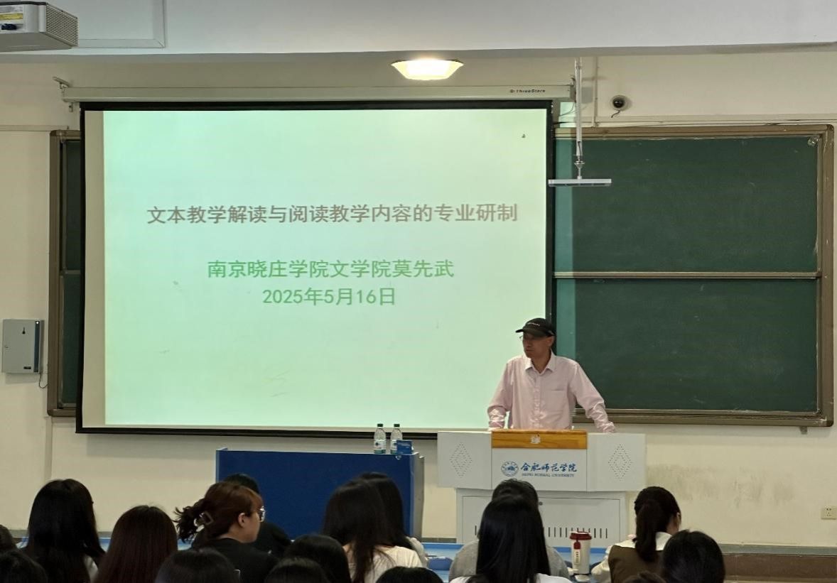 5月16日,122cc太阳成集团“经典悦读”讲坛在锦绣校区逸夫楼405教室举行,南京晓庄学院122cc太阳成集团教授、硕士生导师莫先武应邀作题为《文本教学解读与阅读教学内容的专业研制——以<背影>为例》的学术报告。报告会由122cc太阳成集团副经理甘松主持,语文教育硕士研究生、师范生近百人到场聆听。