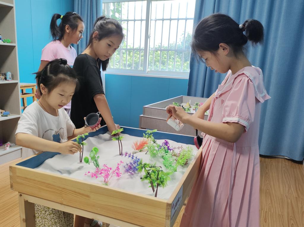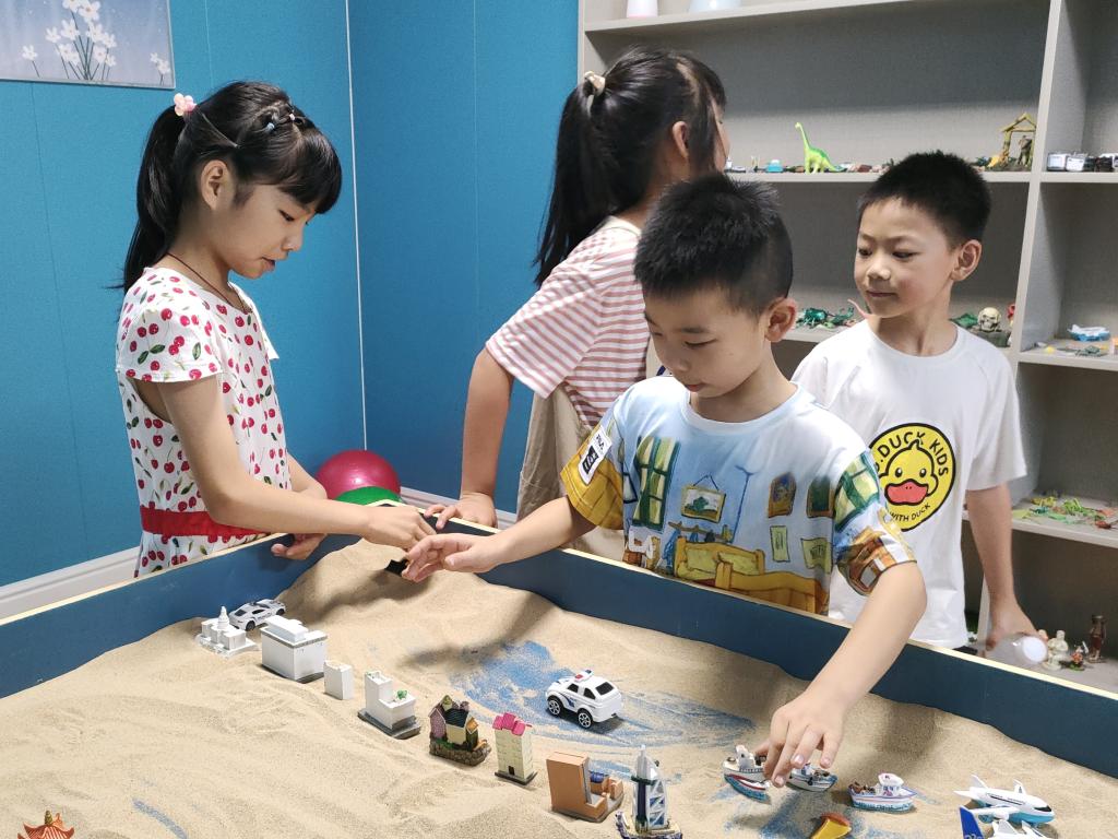首先,在小先生朱幸武的带领下,小学员们来到了心理健康教室。教室内有着许多相应的场景,最受欢迎的便是解压沙盘。小学员们有序排队,依次进入,纷纷动手尝试。