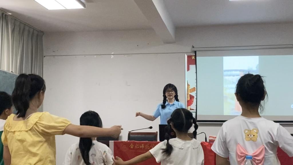 喜迎二十大,童心永向党。在最后一堂手语课上,徐子靓小先生带领小学员们学习《国家》手语操,歌词中唱到“国和家连在一起”,小学员们双手环环相扣,紧紧联系在一起。也正如歌词中那样,我国历经艰难险阻,一路走来,离不开中国共产党的领导,也离不开千千万万人民的支持。