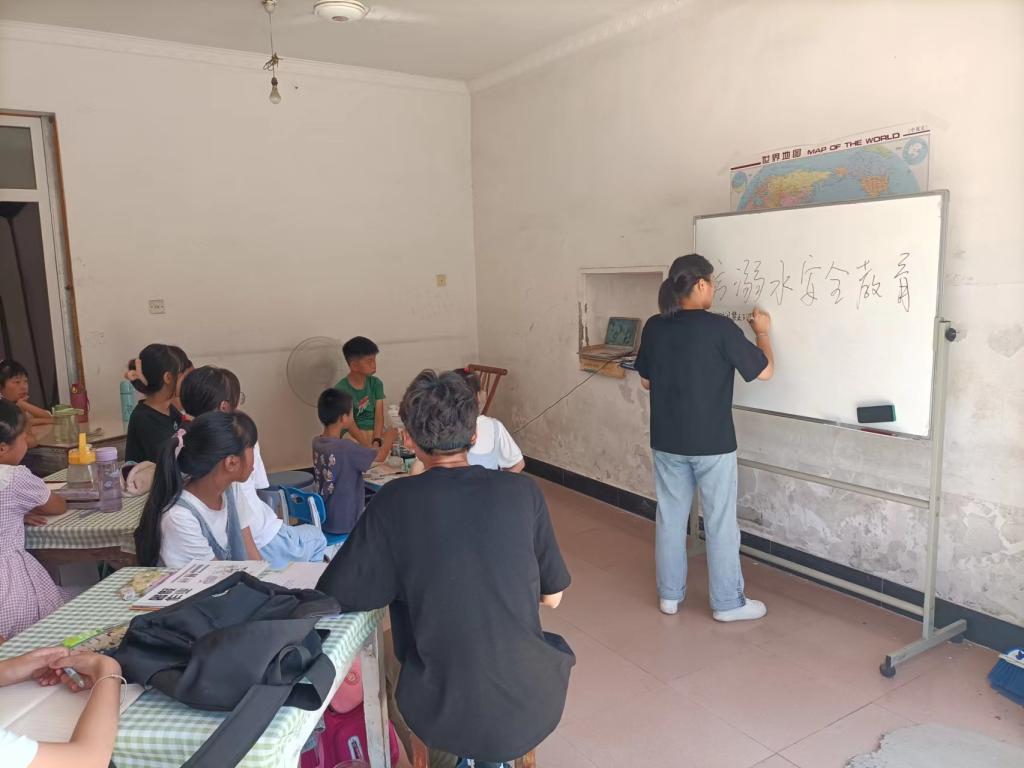 开班仪式结束后,小先生王鑫向小学员们上了一堂防溺水安全教育课,小学员积极配合,认真听讲,课堂氛围融洽。下午,小先生张圆圆与鑫带领小学员们领略了生动有趣的数学,并向他们科普了丰富多彩的生活小知识,小学员们乐于思考,积极回答,小先生们也向他们分发了各式各样的小礼物,鼓励课堂积极互动。
